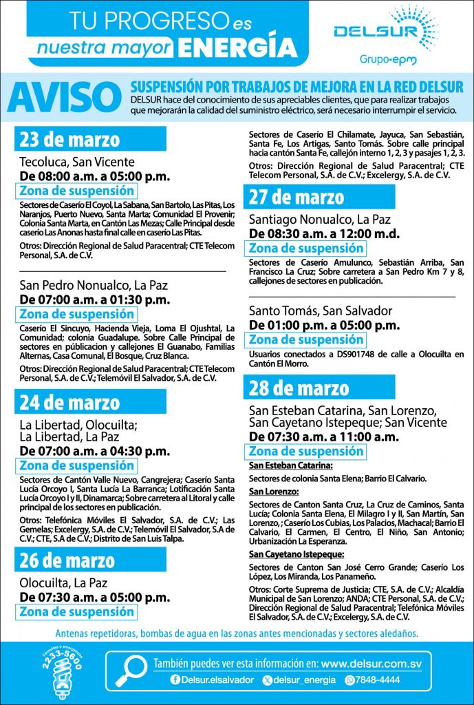 Interrupciones por mantenimiento programado