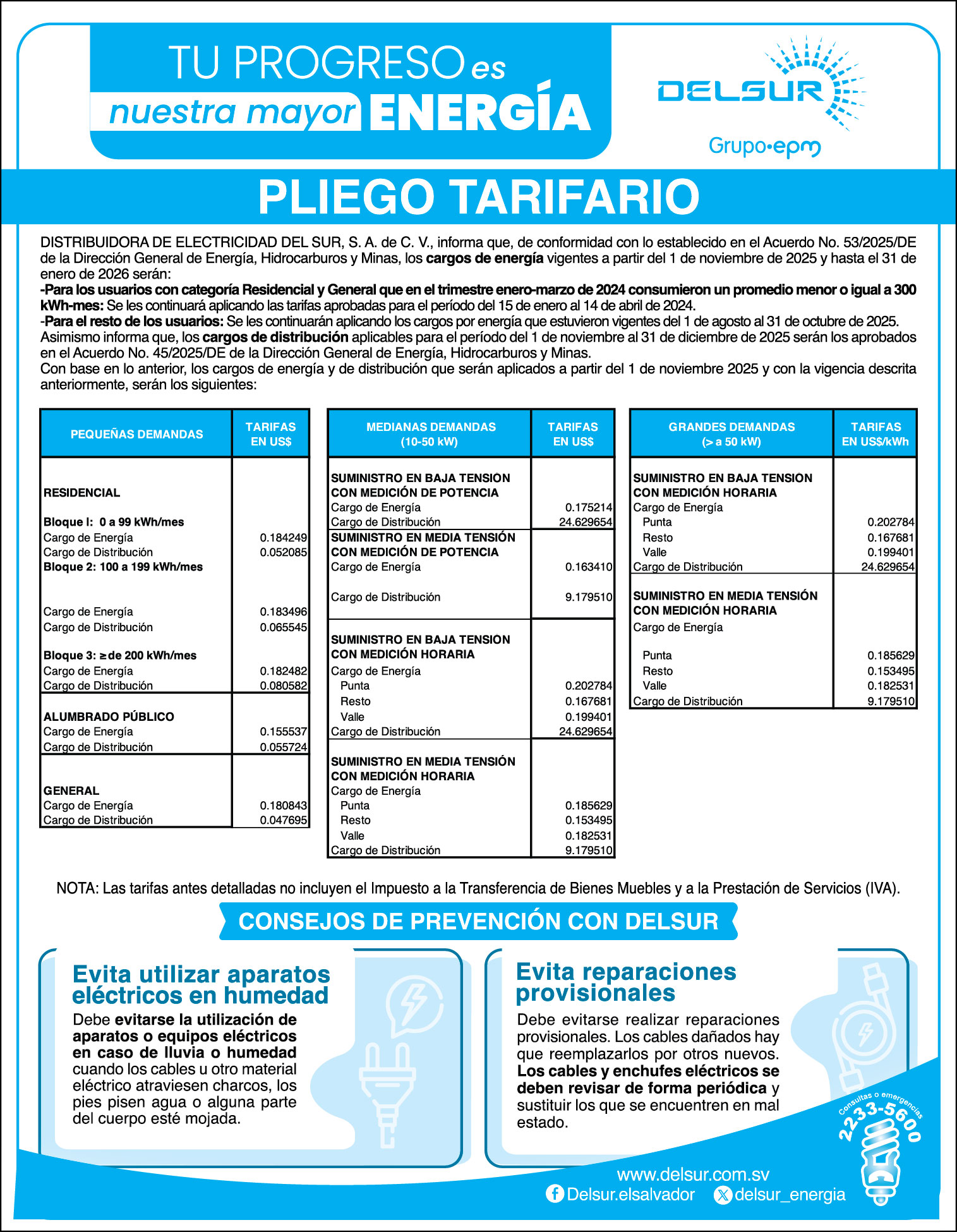 Para conocer los Cargos de Comercialización vigentes, puede consultar la siguiente imagen:
