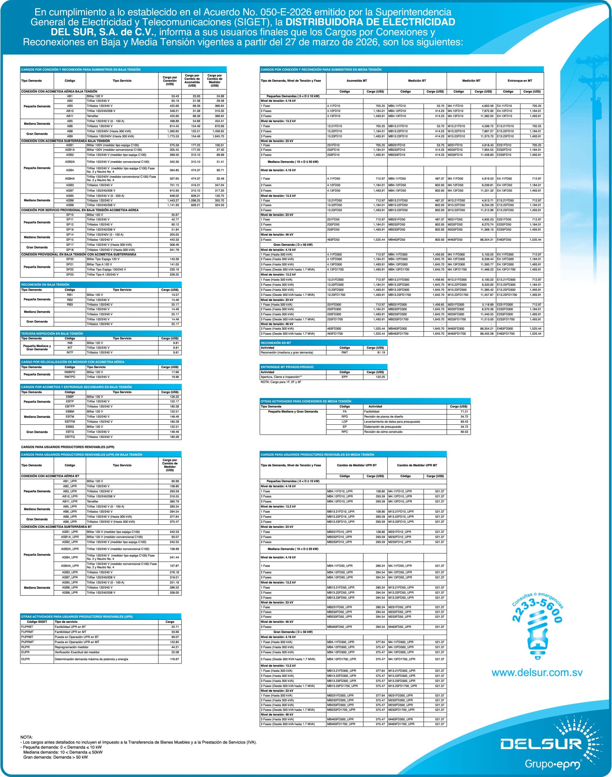Pliego tarifario vigente – Distribuidora de Electricidad DELSUR S.A de C.V.